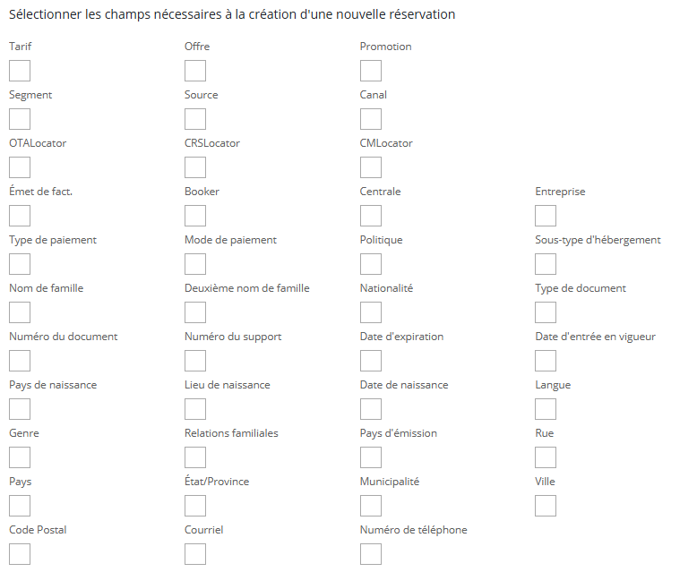 À partir de la version 2.12, les champs obligatoires pour l'en-tête ou la création d'une réservation ont été étendus.