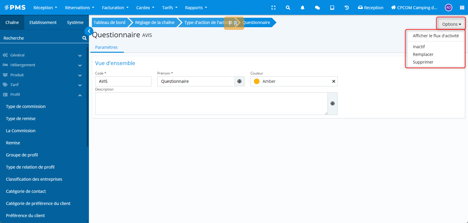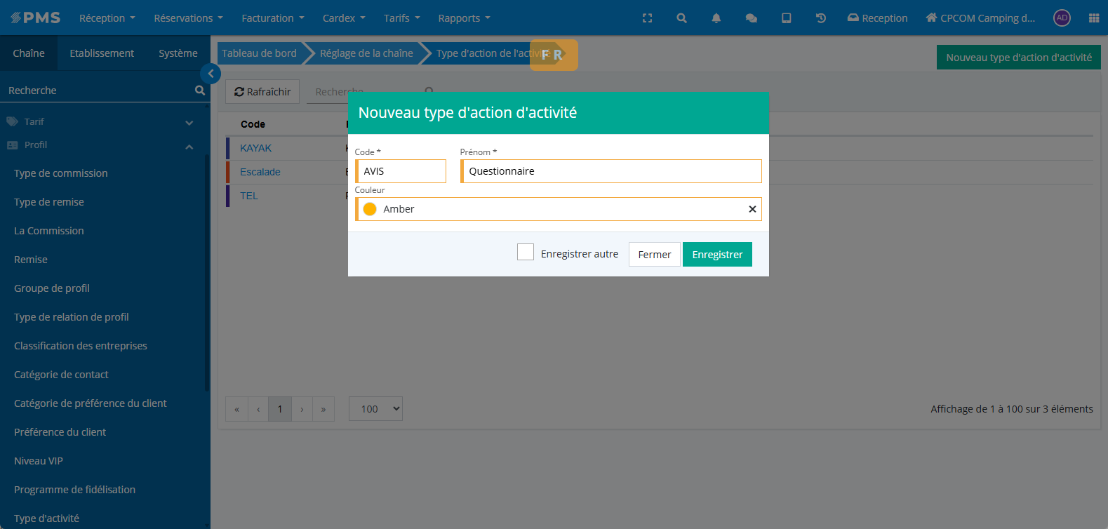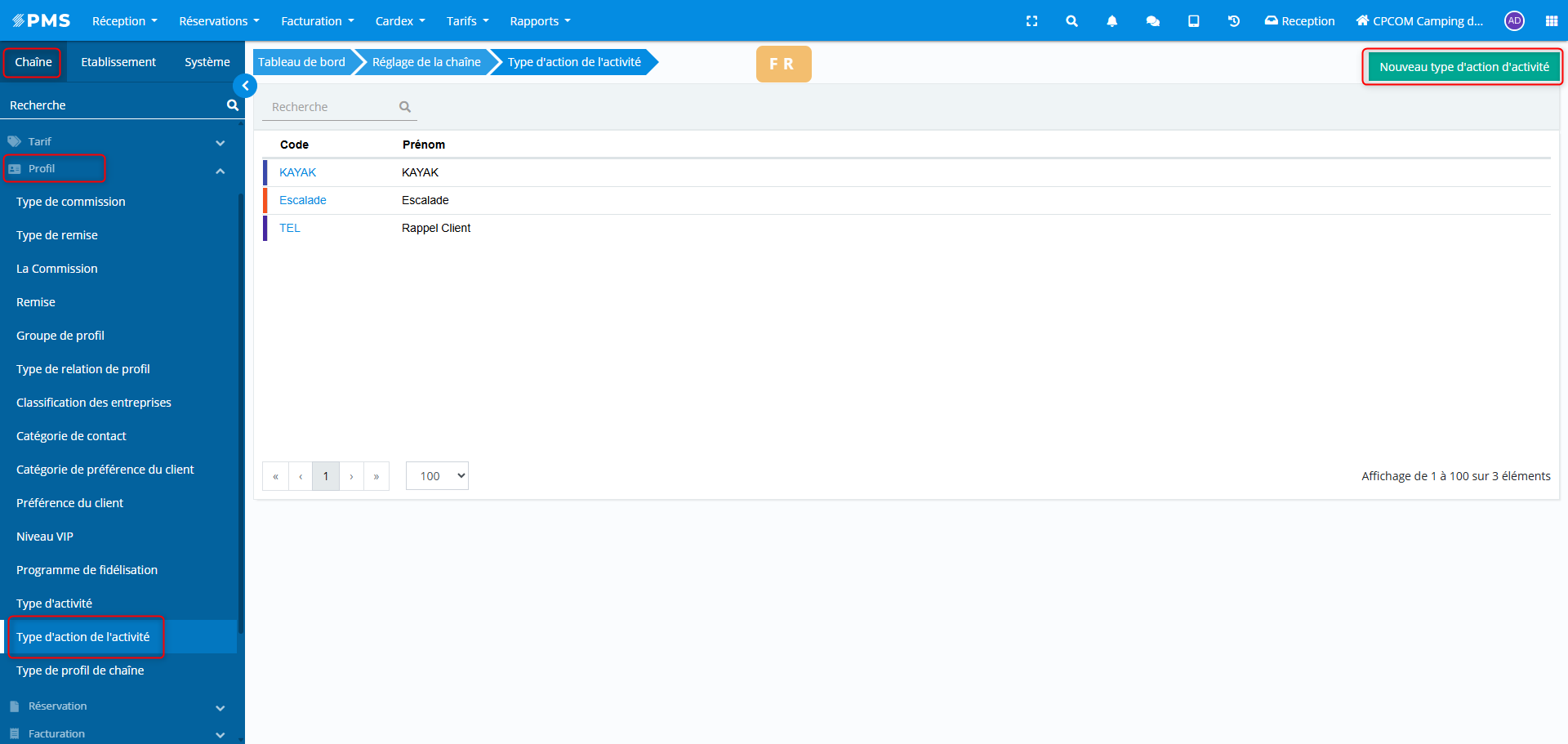 Types d'action d'activités