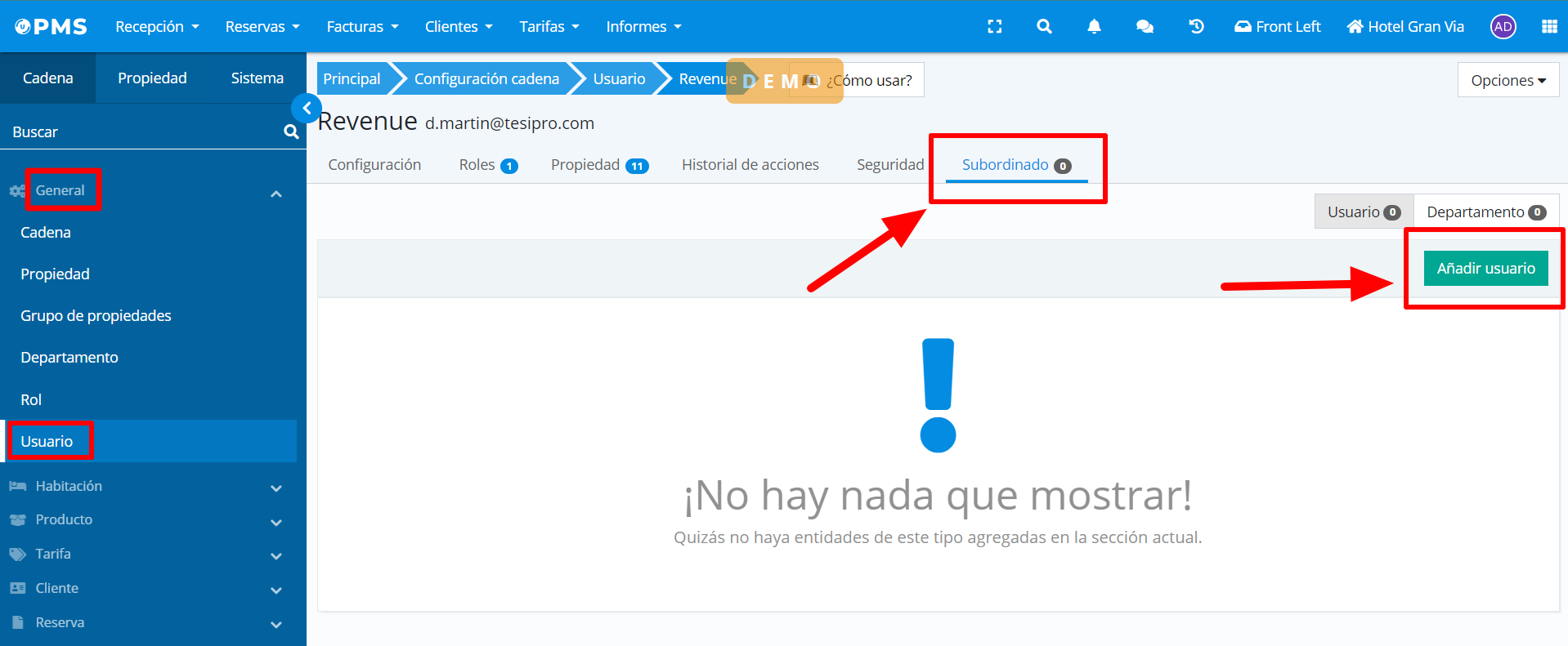 Configuration PMS Chaîne > Général > Utilisateur > Subordonné