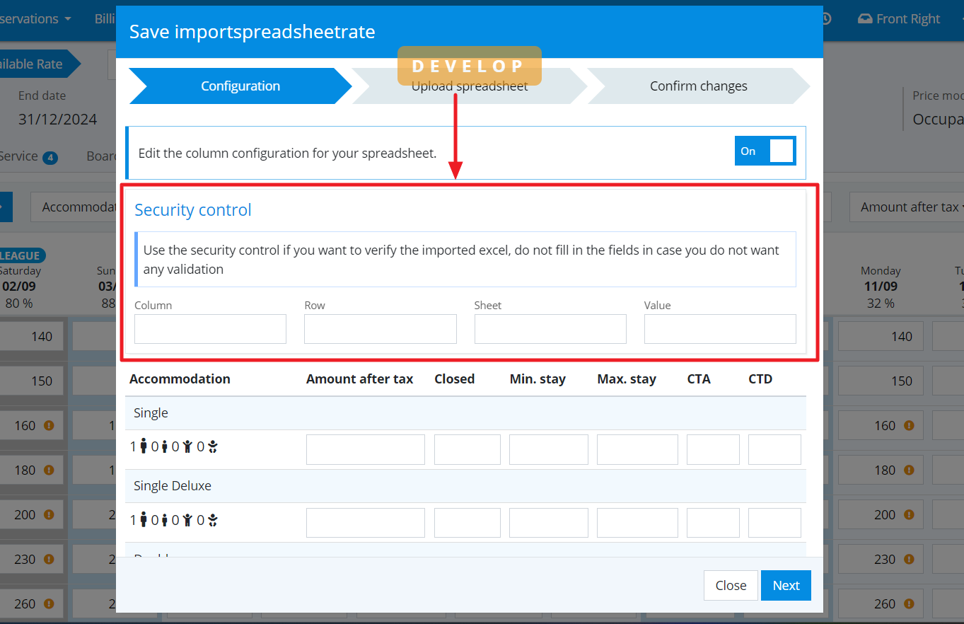 - Écran de contrôle de sécurité lors du téléchargement des fichiers Excel des tarifs.